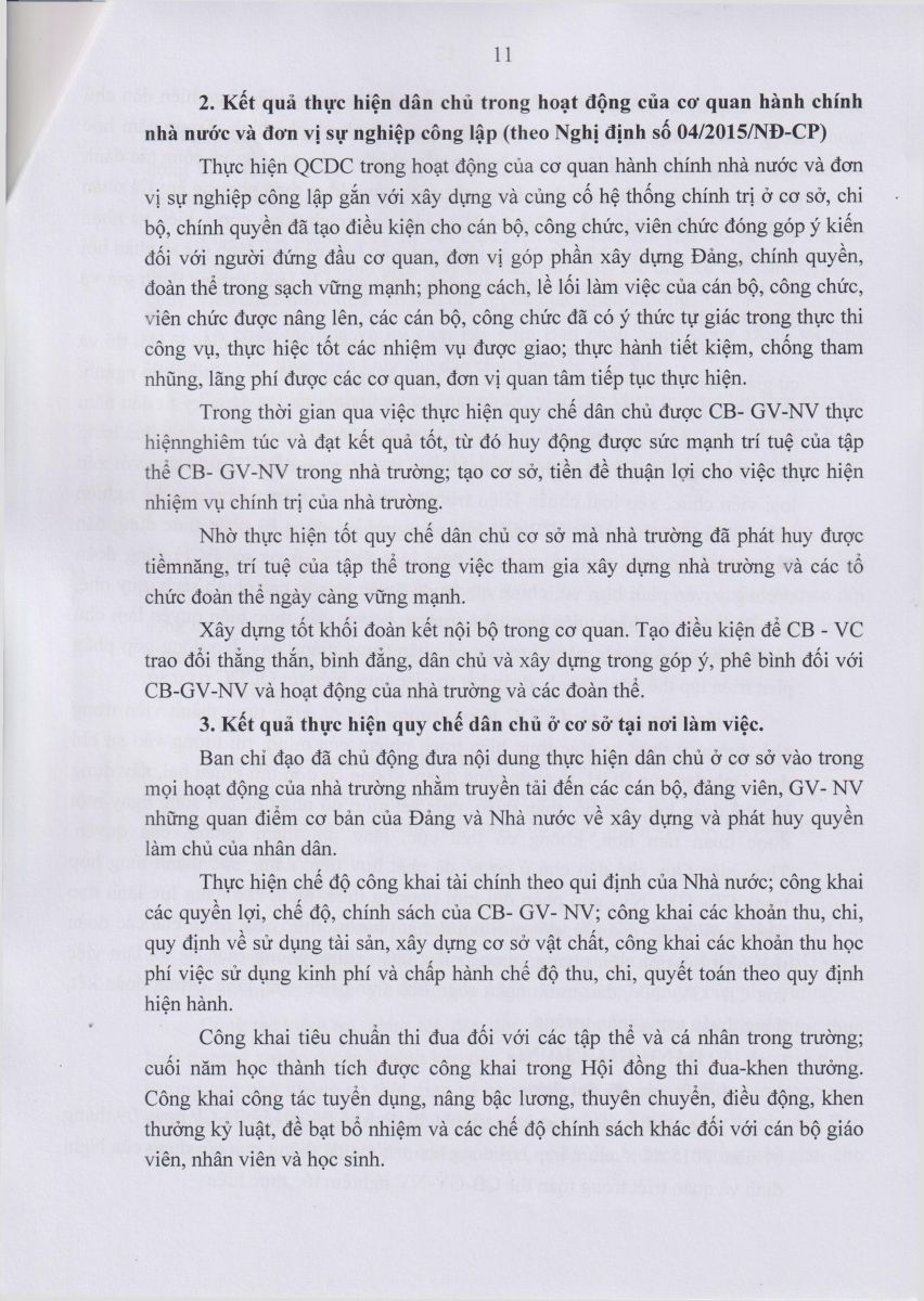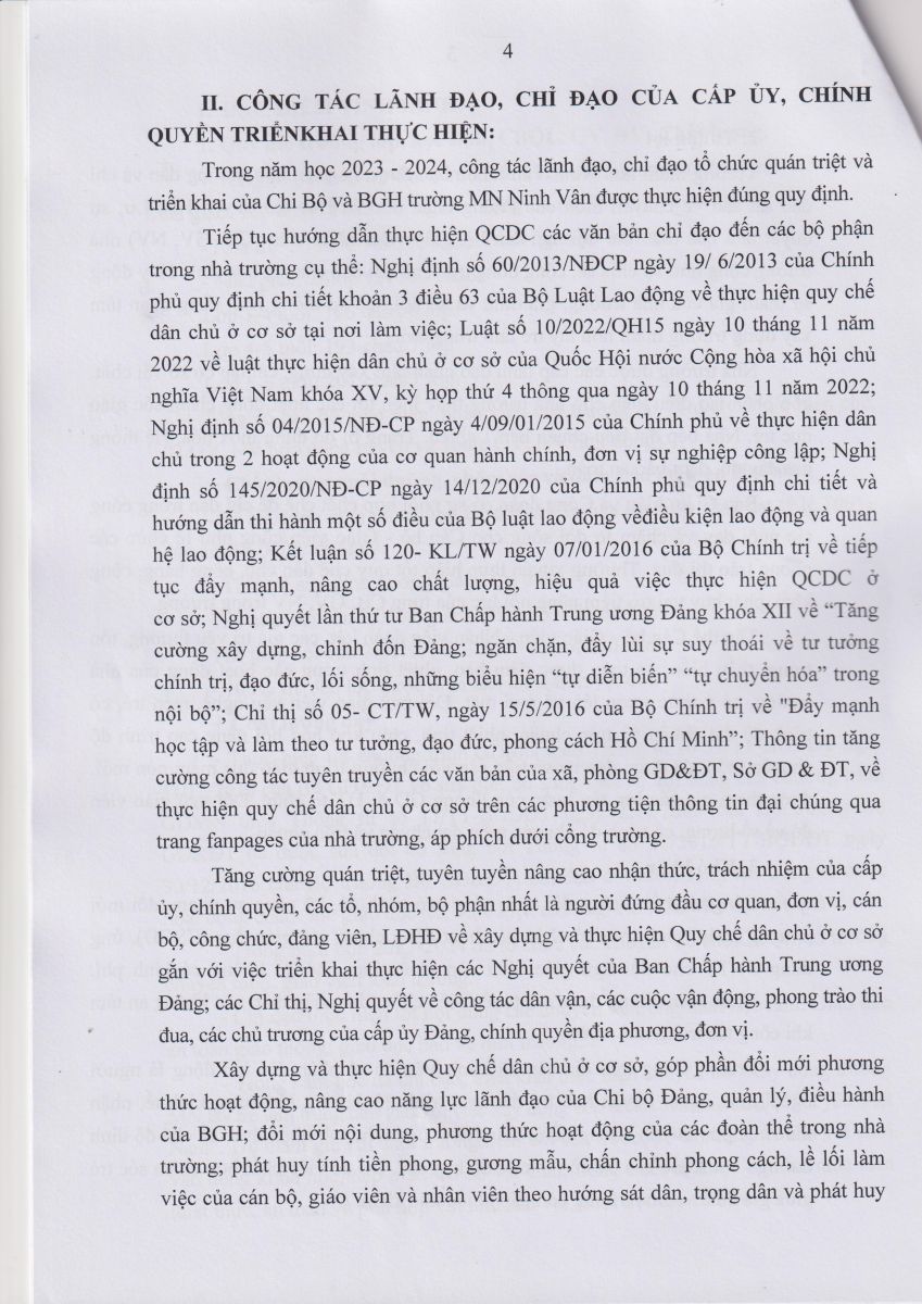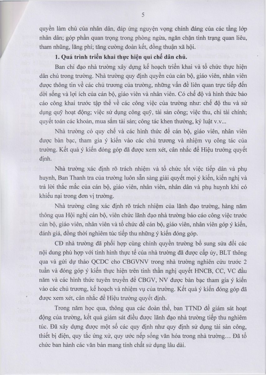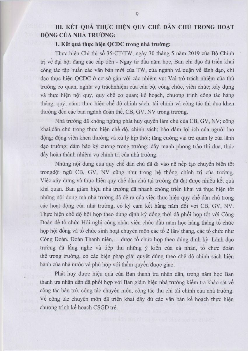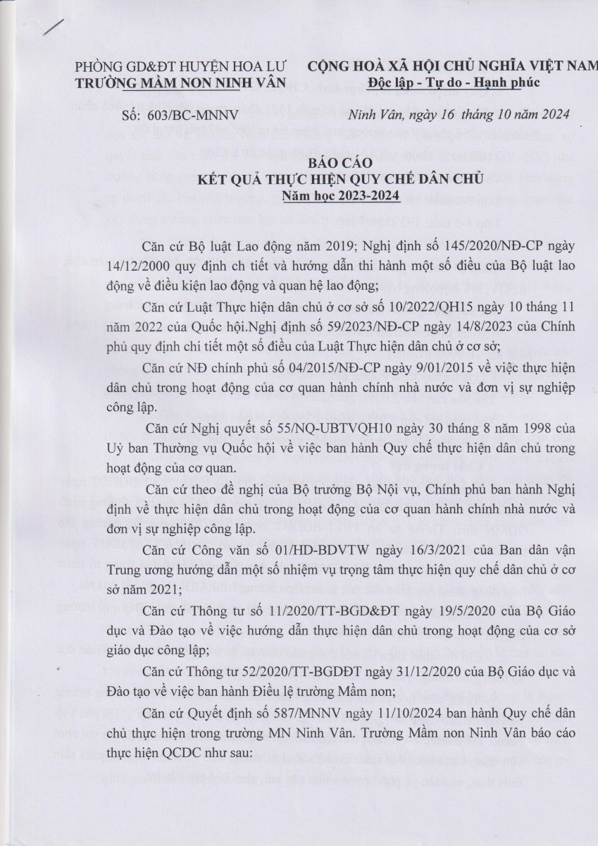 Báo cáo kết quả thực hiện Quy chế dân chủ Năm học 2023 – 2024