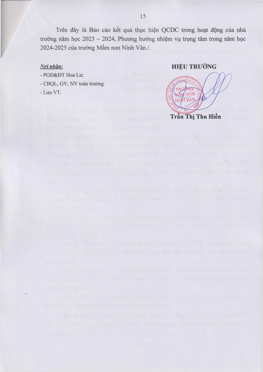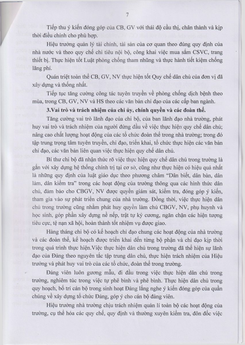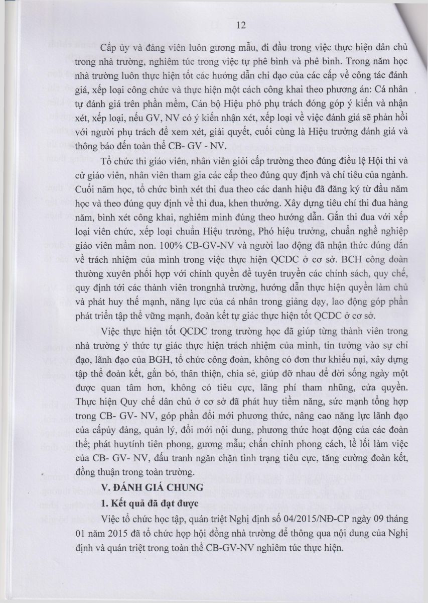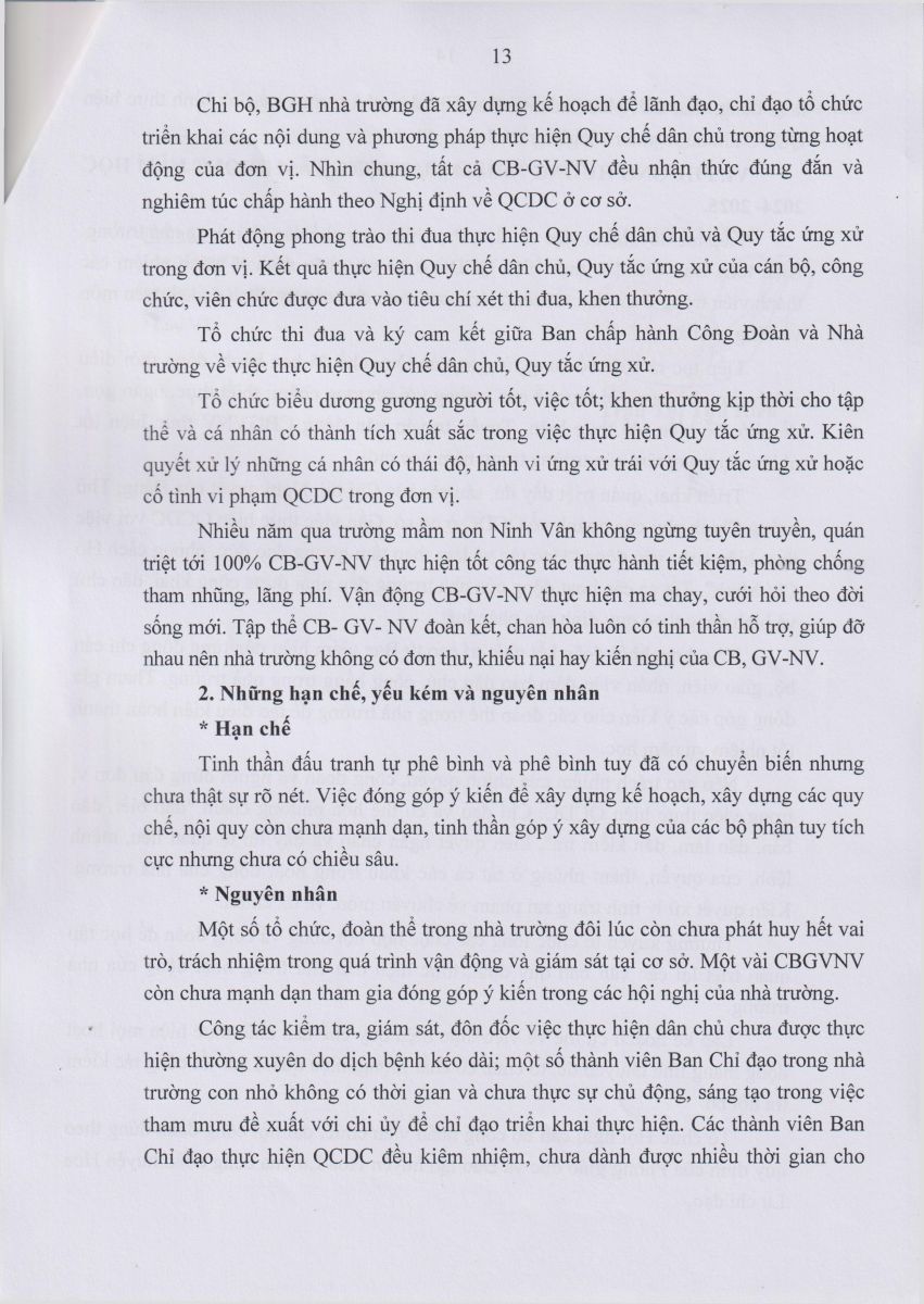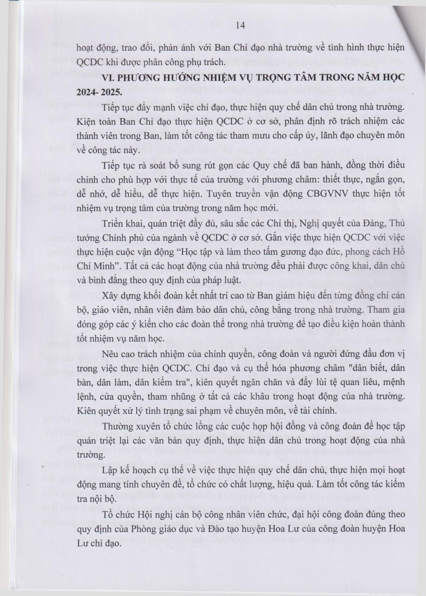 Báo cáo kết quả thực hiện Quy chế dân chủ Năm học 2023 – 2024