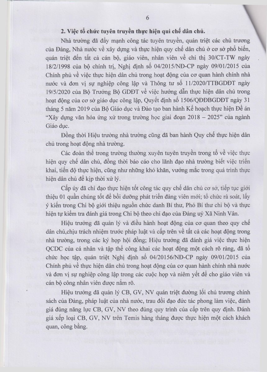 Kế hoạch thực hiện dân chủ trường MN Ninh Vân năm học 2025-2026