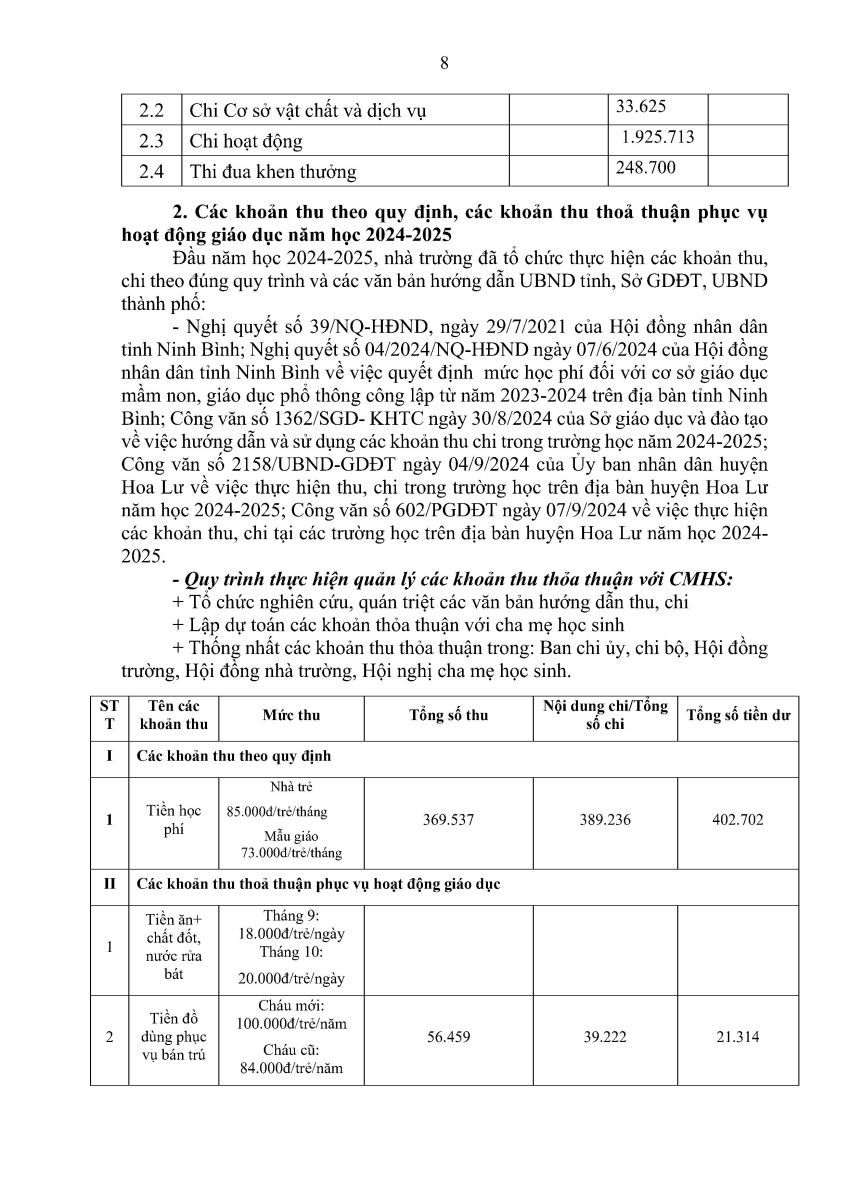 Quy chế chi tiêu nội bộ các khoản thu theo quy định, các khoản thu khác, các khaonr thu dịch vụ, phục vụ hỗ trợ hoạt động giáo dục trường Mầm non Ninh Vân năm học 2025 – 2026