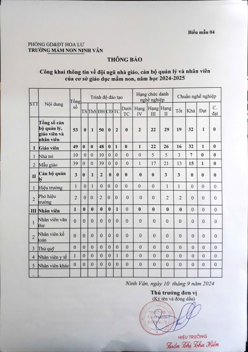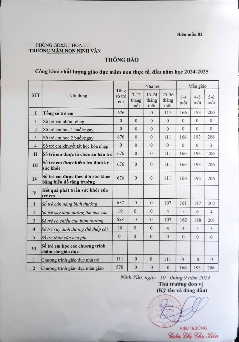công khai các biểu đầu năm học 2025-2026 theo Thông tư 36