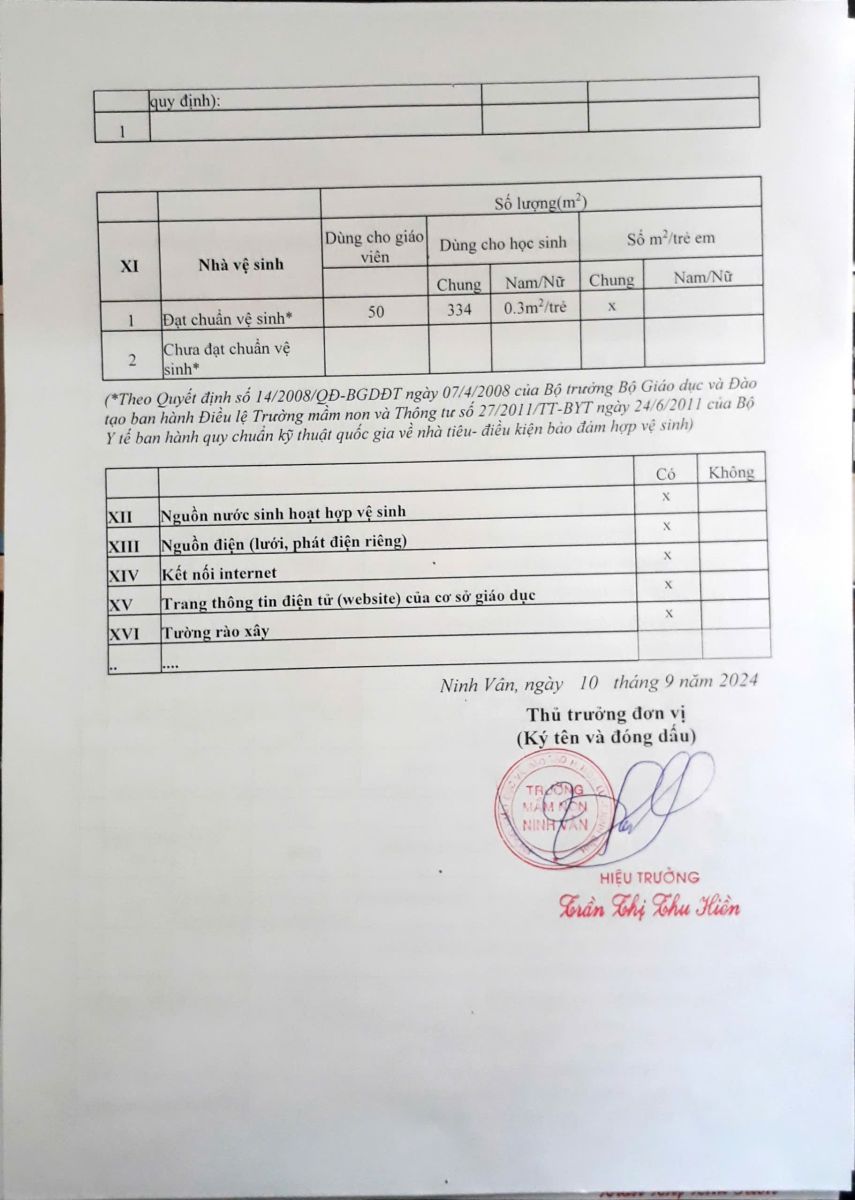 Quy chế chi tiêu nội bộ các khoản thu theo quy định, các khoản thu khác, các khaonr thu dịch vụ, phục vụ hỗ trợ hoạt động giáo dục trường Mầm non Ninh Vân năm học 2025 – 2026