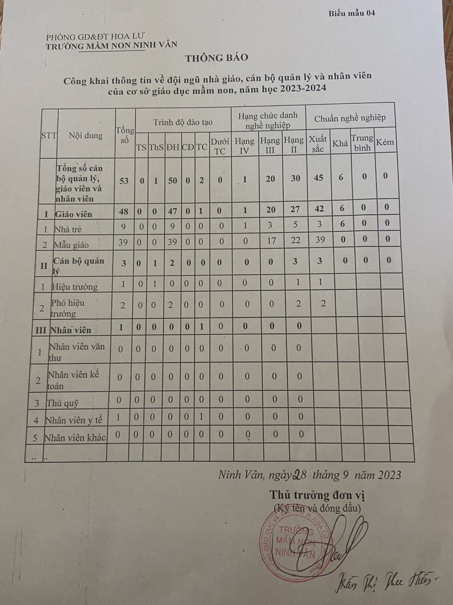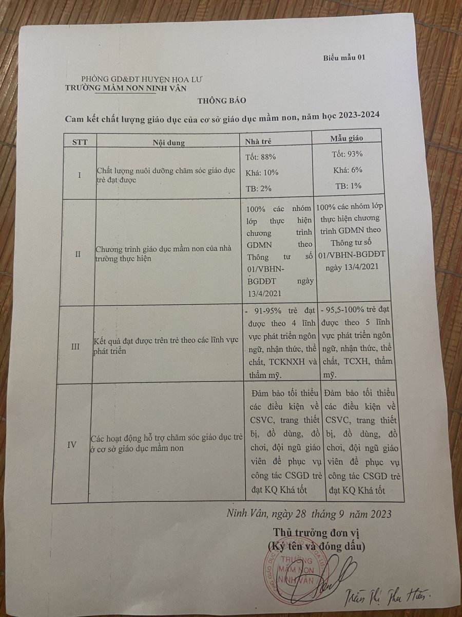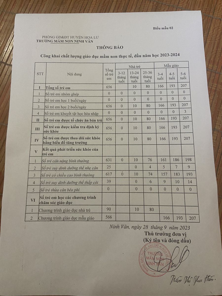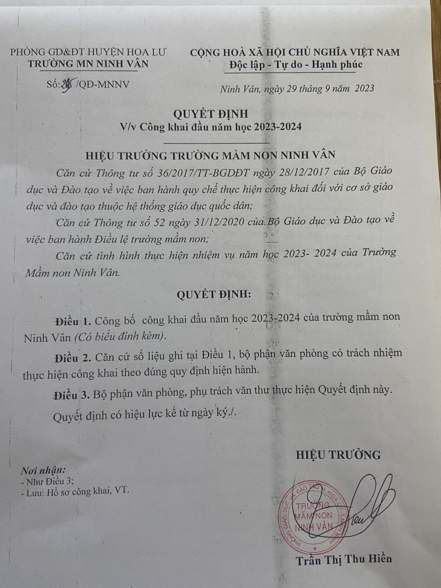 Công khai quyết định và các biểu đầu năm học 2023 – 2024 theo thông tư 36