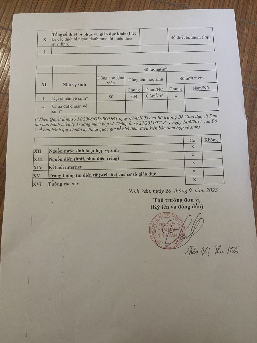 Quy chế chi tiêu nội bộ các khoản thu theo quy định, các khoản thu khác, các khaonr thu dịch vụ, phục vụ hỗ trợ hoạt động giáo dục trường Mầm non Ninh Vân năm học 2025 – 2026