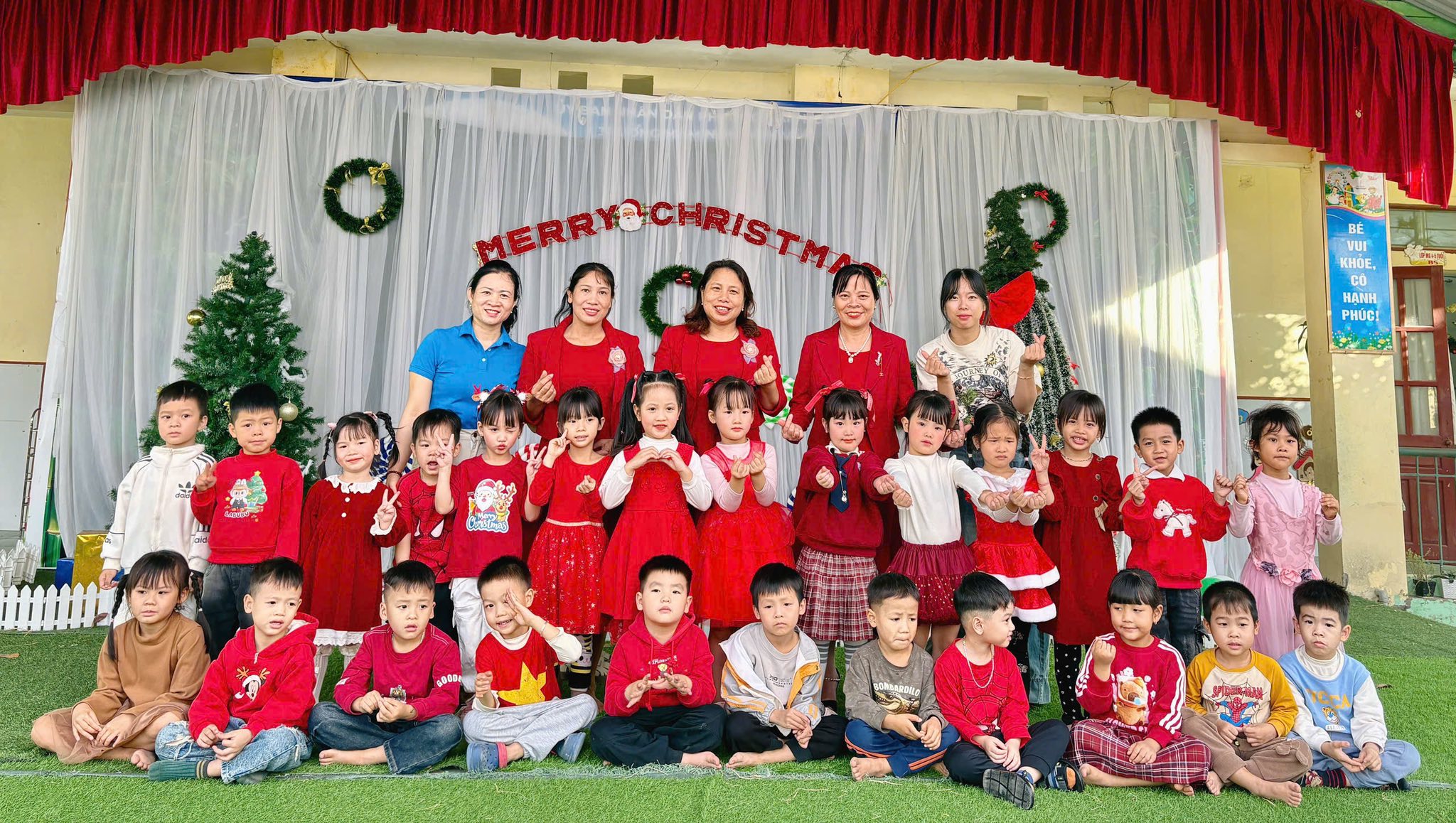 Trong tiết trời se lạnh những ngày cuối năm, khi sân trường khoác lên mình sắc đỏ – xanh rực rỡ và những giai điệu Giáng sinh quen thuộc vang lên ấm áp, Mầm non Ninh Vân đã cùng các con viết nên một mùa Noel thật đẹp qua Chương trình “Giáng sinh yêu thương”