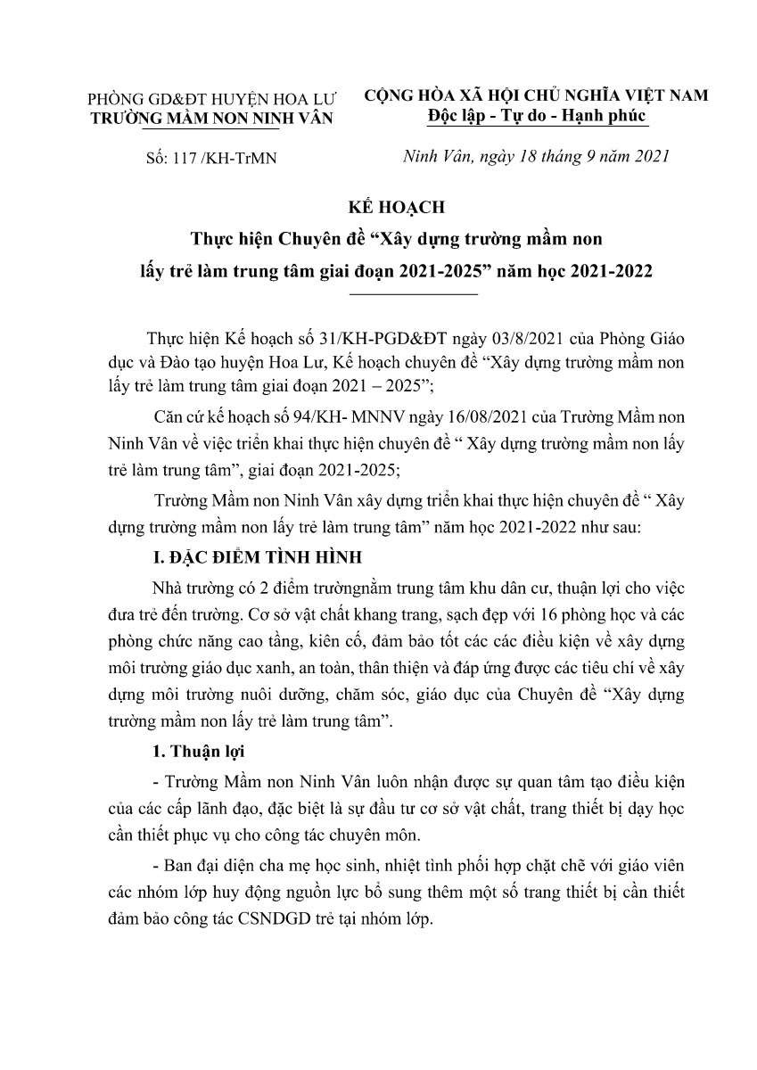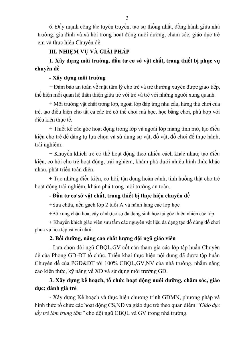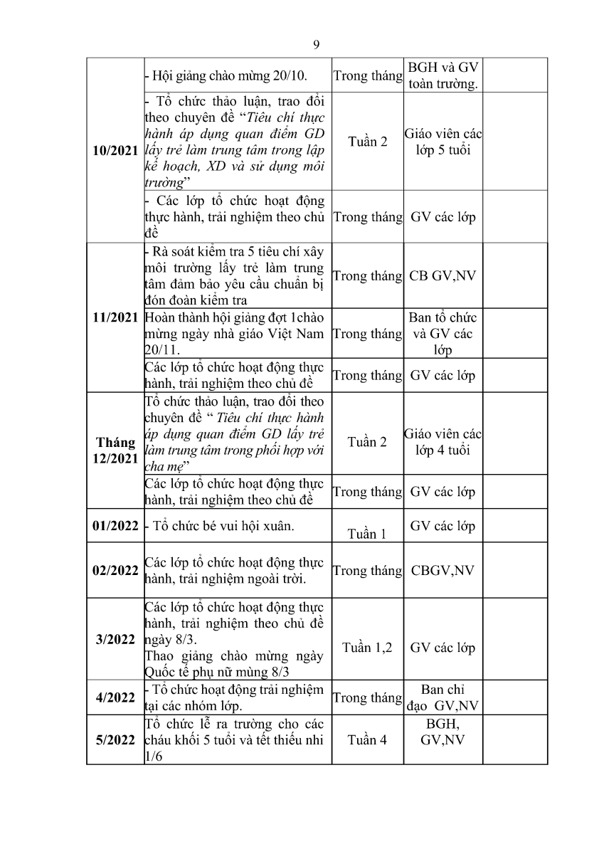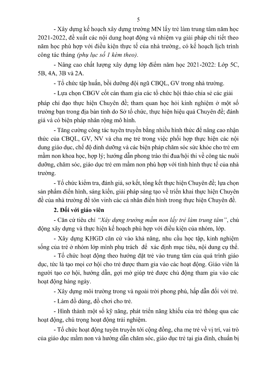 3. Kế hoạch thực hiện Chuyên đề “Xây dựng trường mầm non lấy trẻ làm trung tâm giai đoạn 2021-2025” năm học 2021-2022