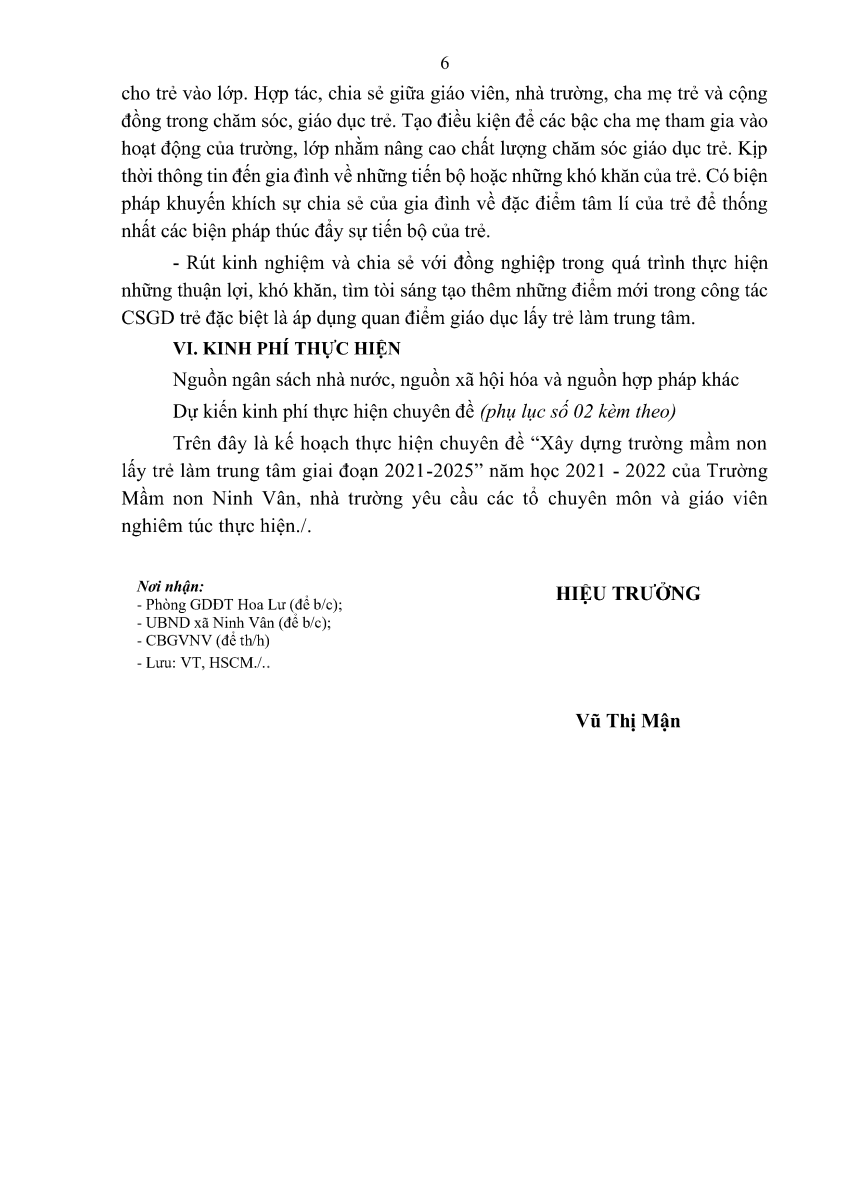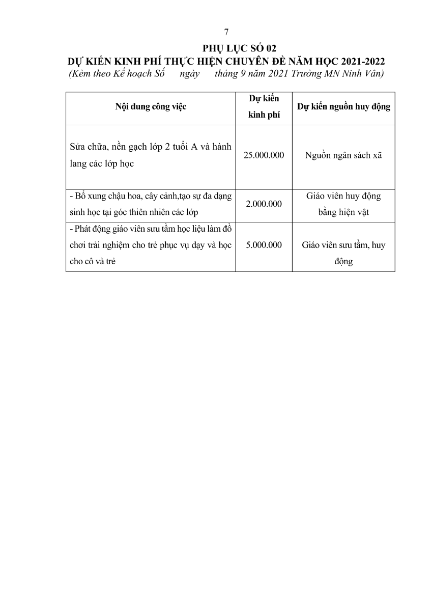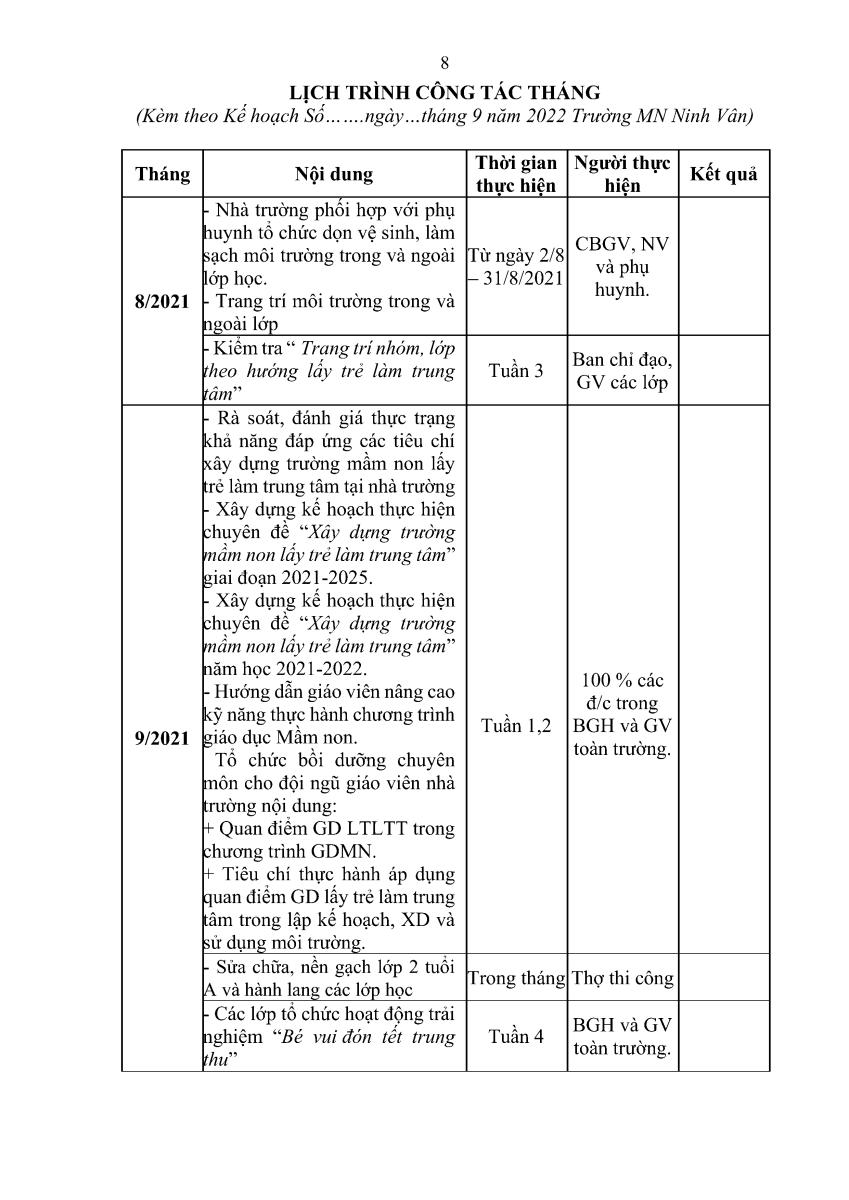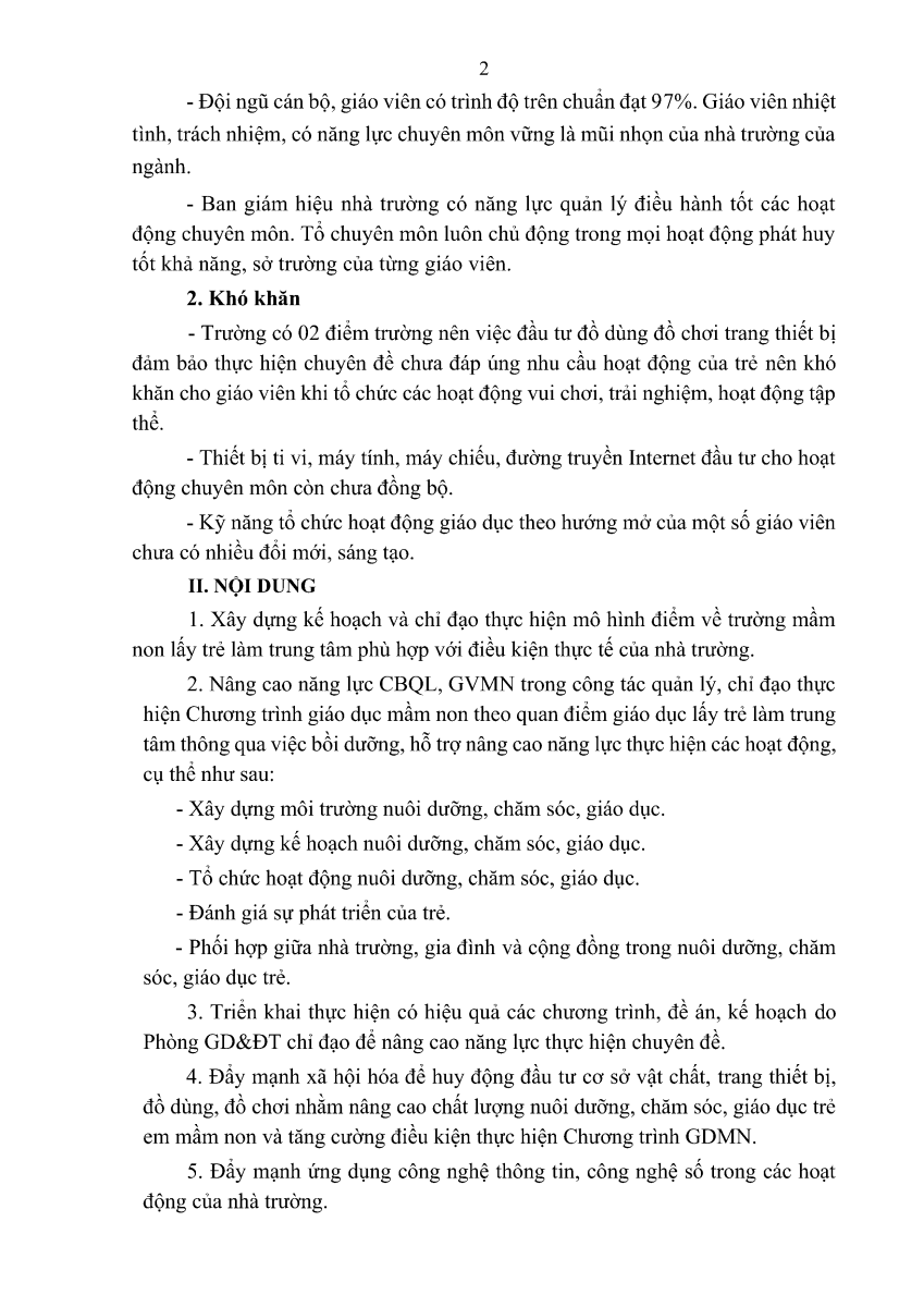 3. Kế hoạch thực hiện Chuyên đề “Xây dựng trường mầm non lấy trẻ làm trung tâm giai đoạn 2021-2025” năm học 2021-2022