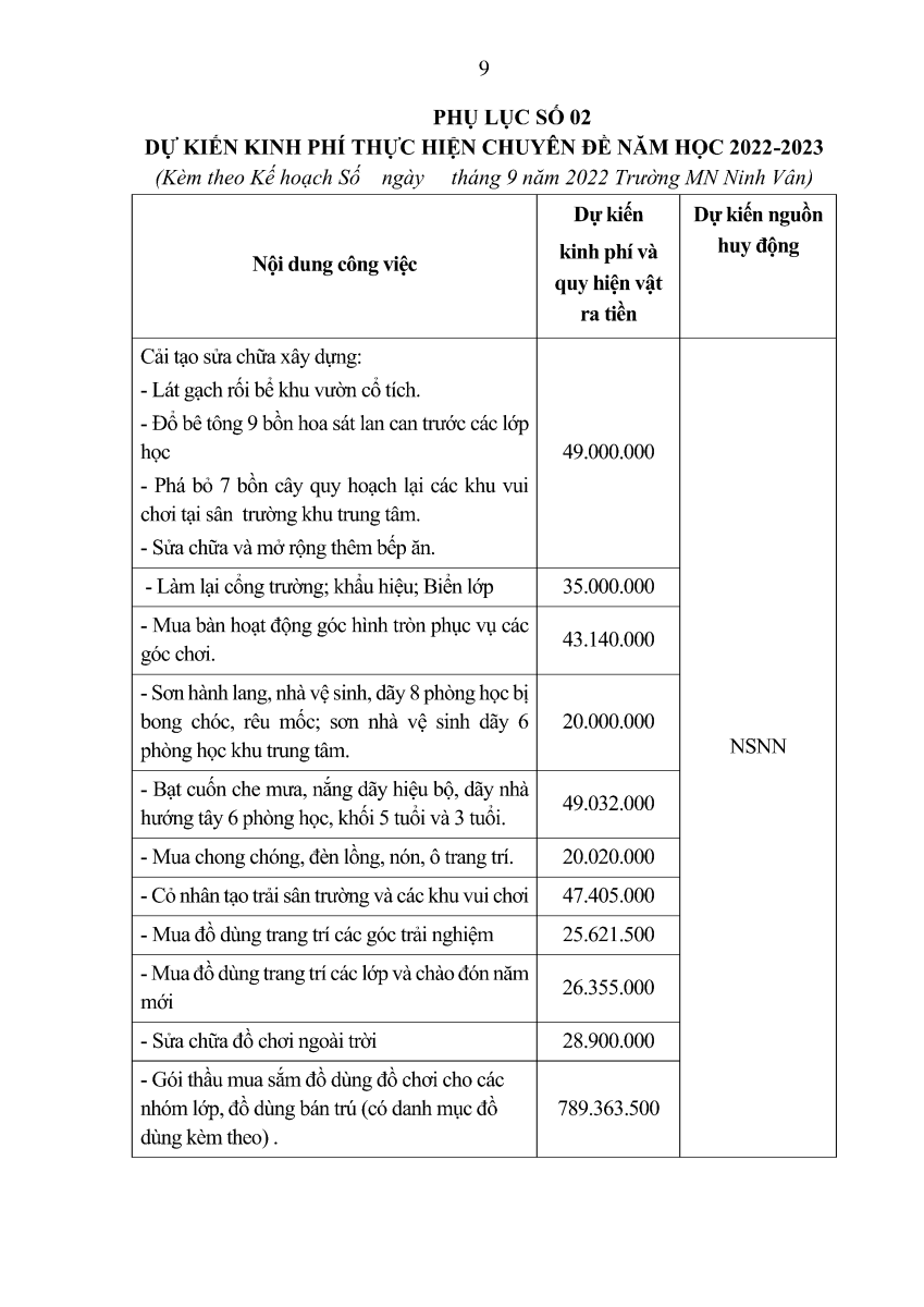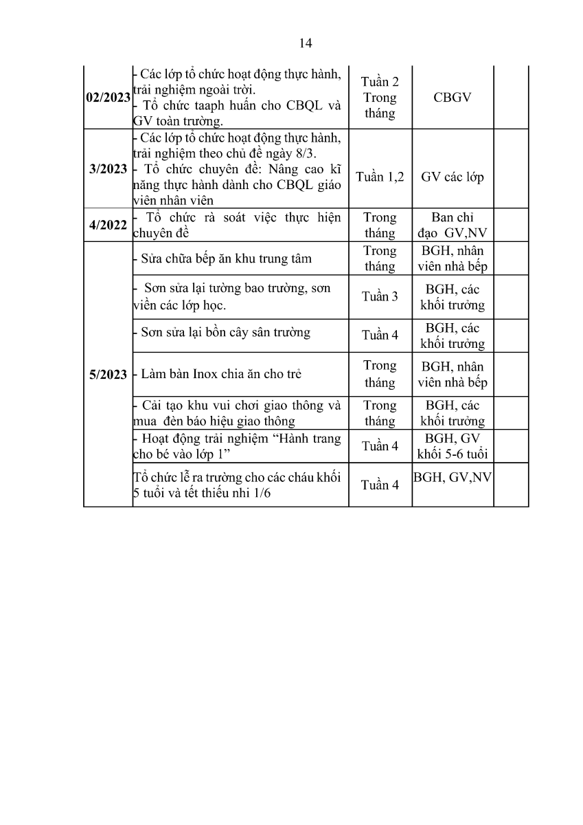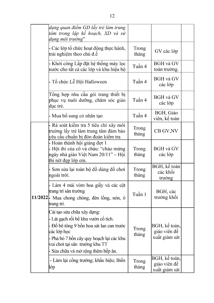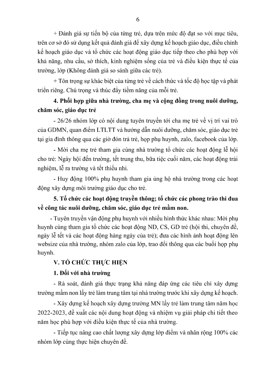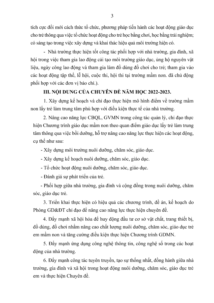 3. Kế hoạch thực hiện chuyên đề “Xây dựng trường mầm non lấy trẻ làm trung tâm” năm học 2022-2023