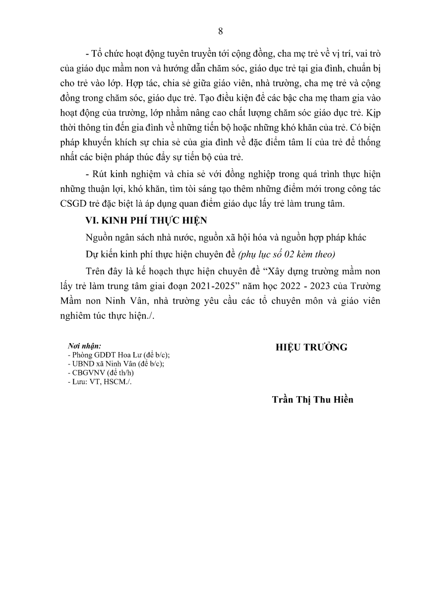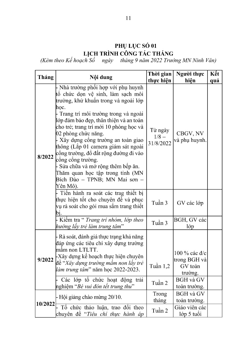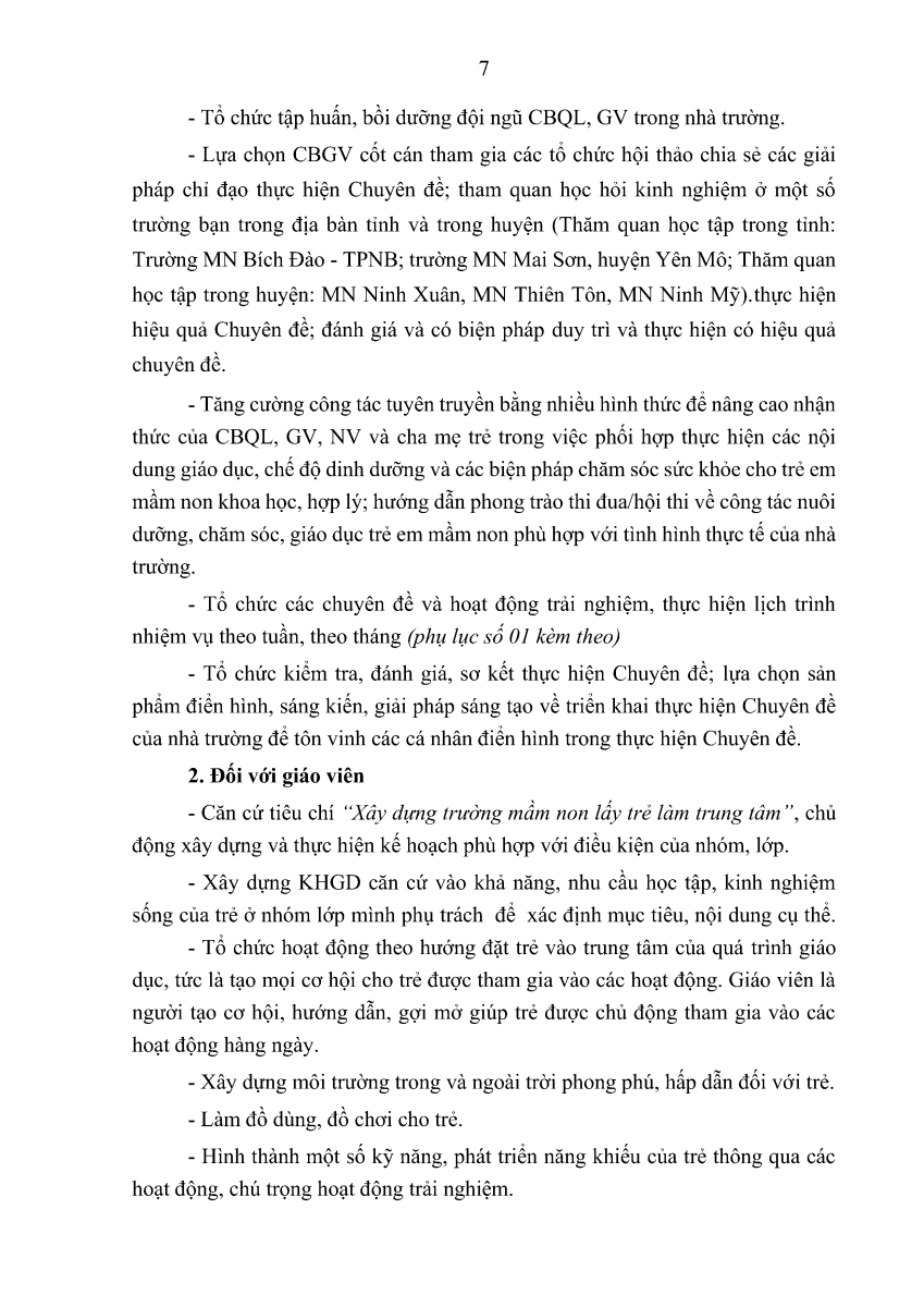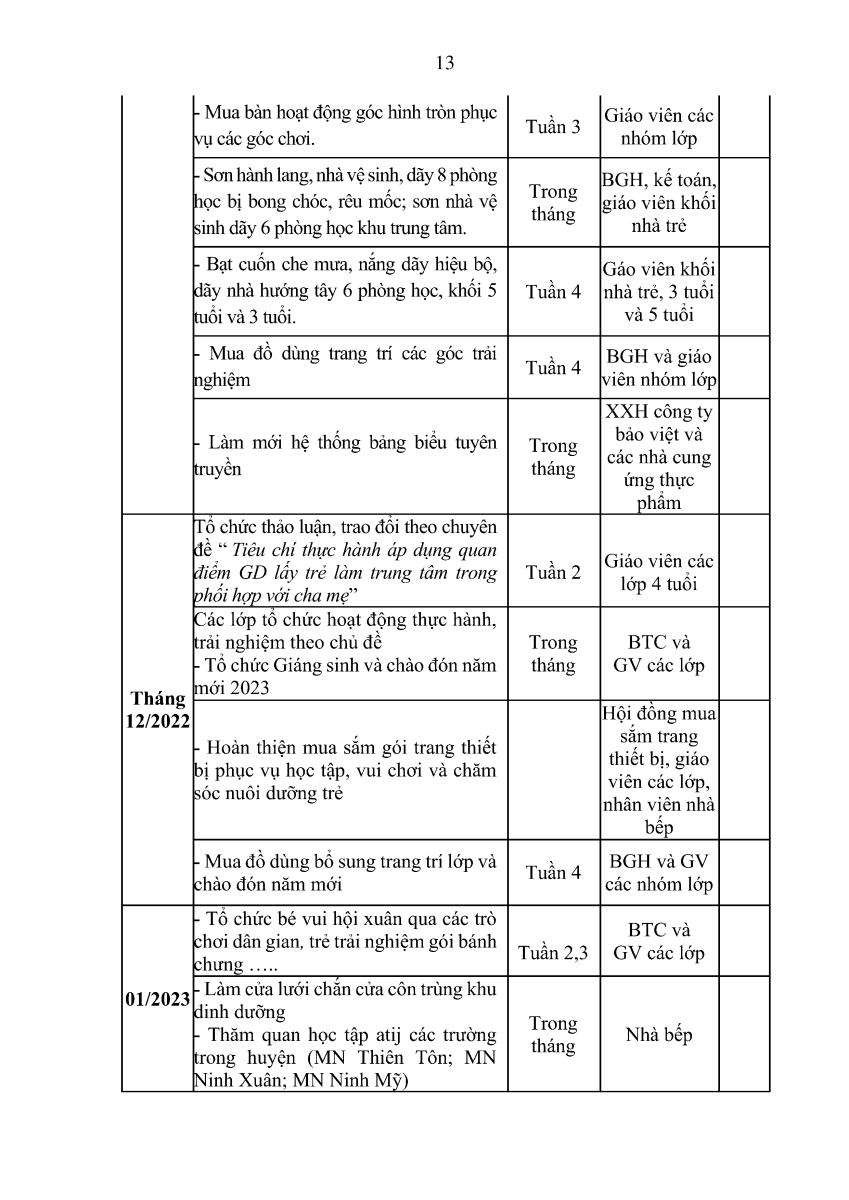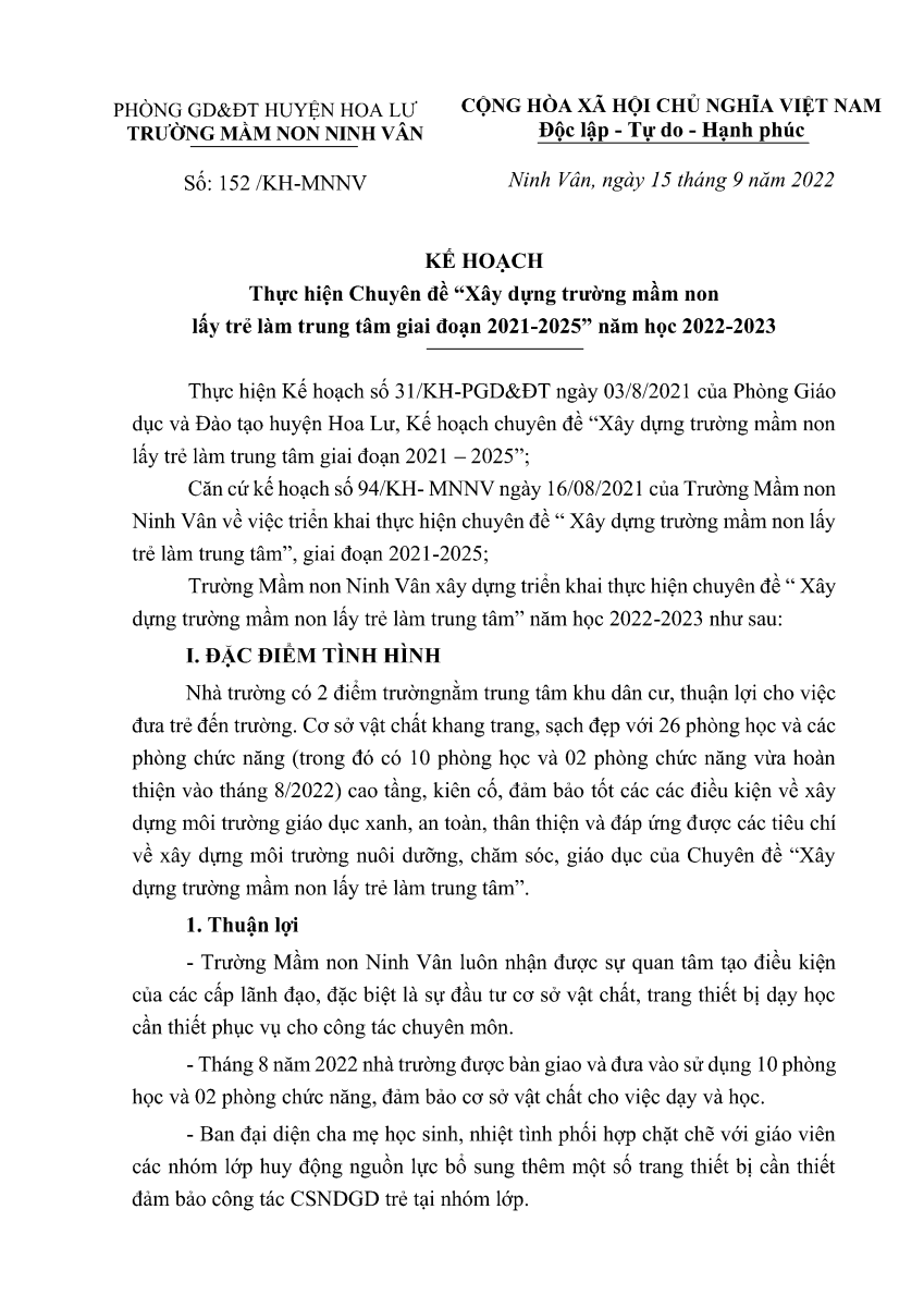 3. Kế hoạch thực hiện chuyên đề “Xây dựng trường mầm non lấy trẻ làm trung tâm” năm học 2022-2023