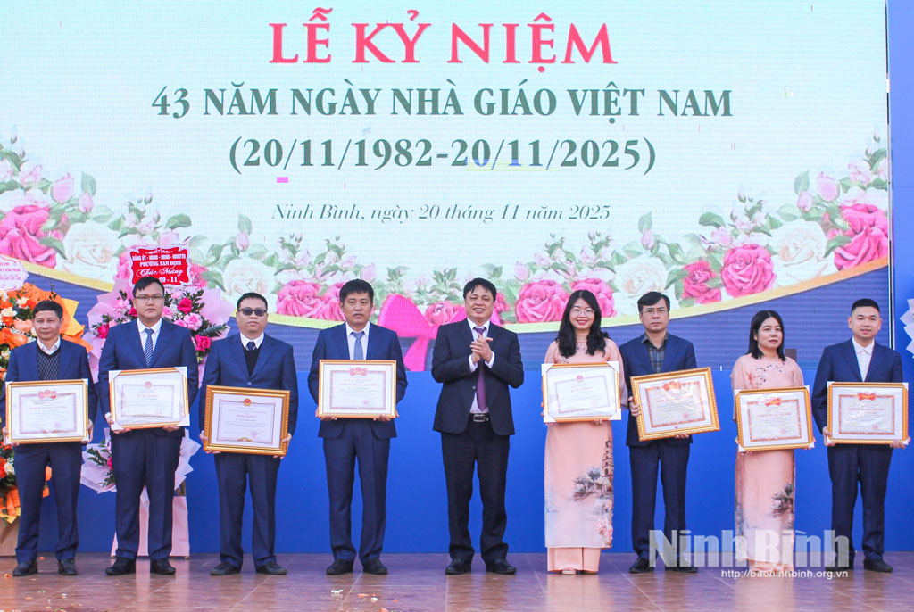 Phát biểu tại buổi lễ, đồng chí Đinh Văn An biểu dương và trân trọng cảm ơn những cống hiến của toàn thể đội ngũ nhà giáo và chúc các thầy giáo, cô giáo tiếp tục giữ vững ngọn lửa đam mê, tận tâm với sự nghiệp “trồng người”.