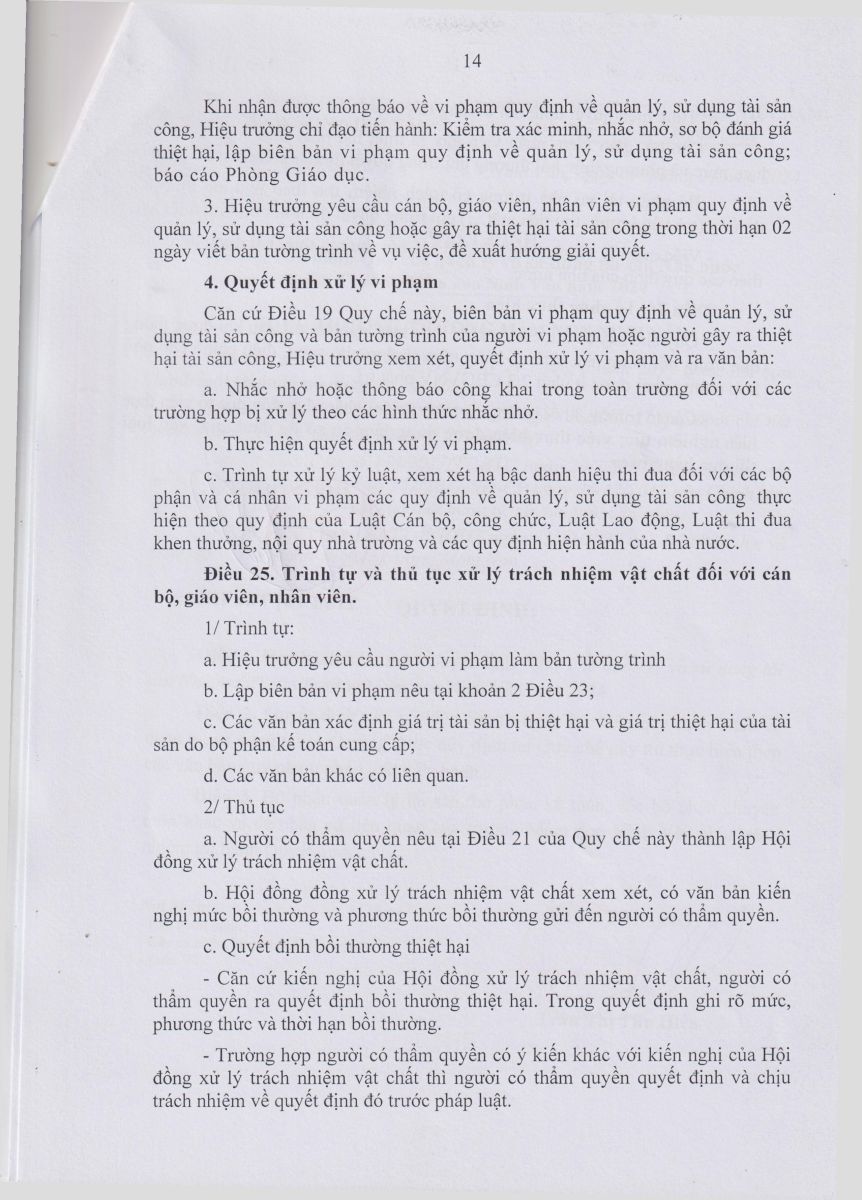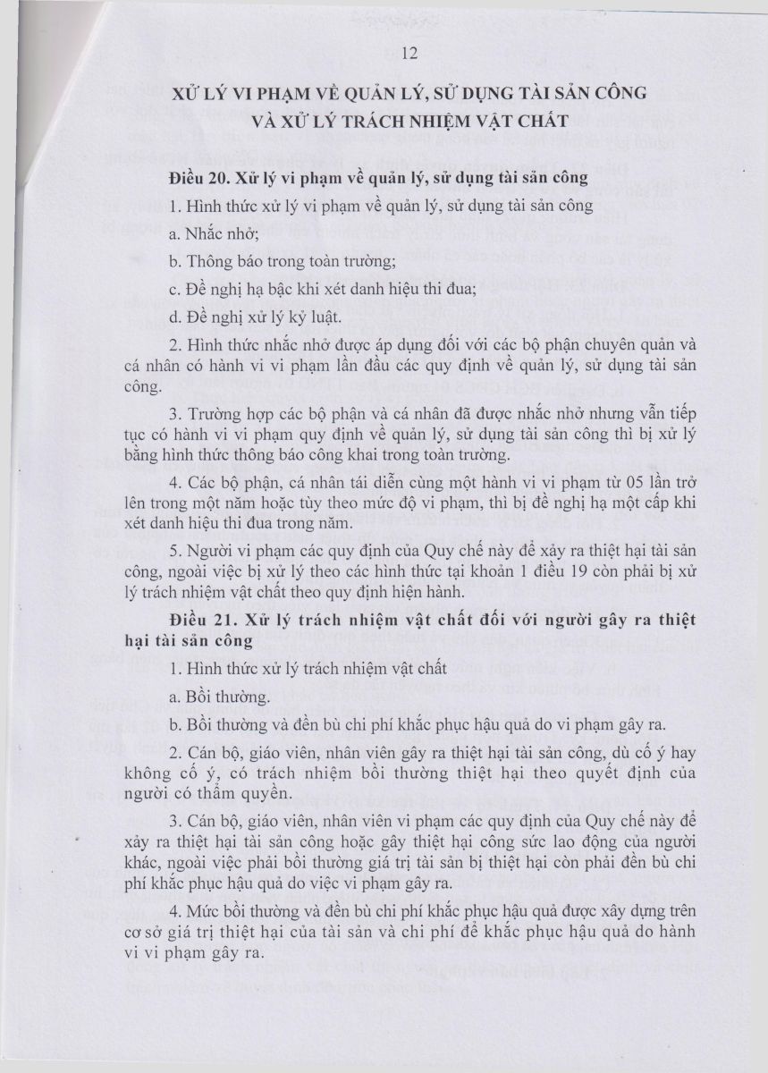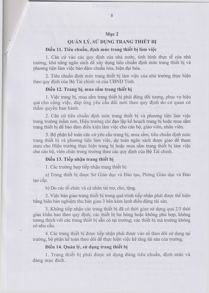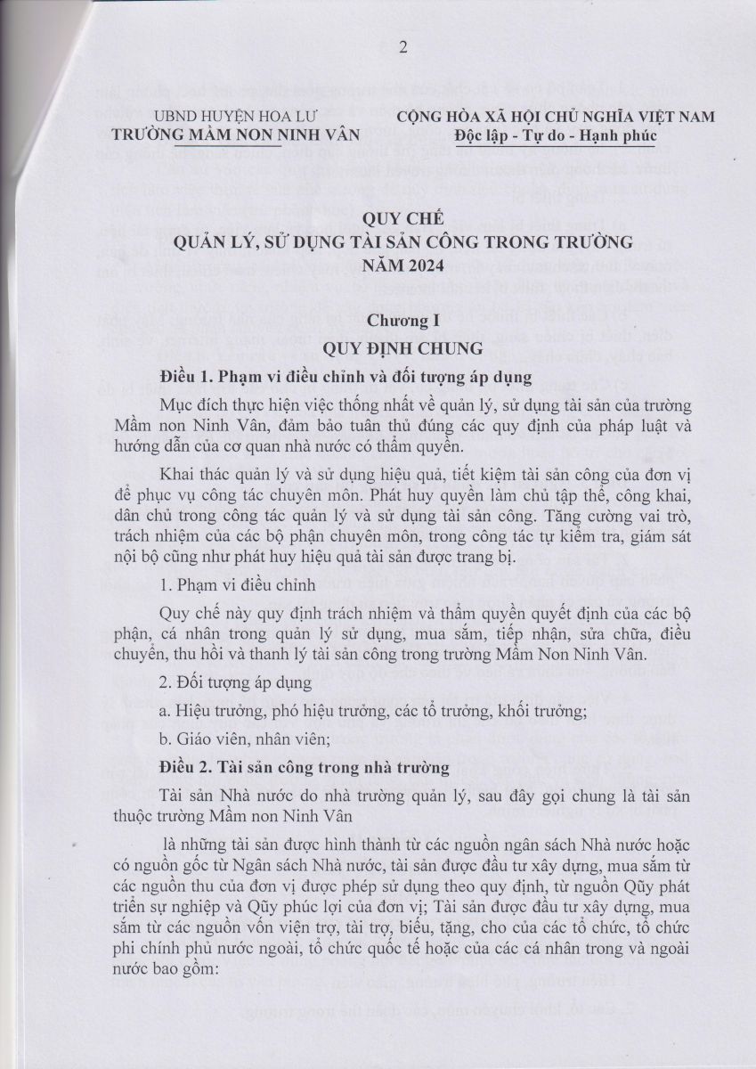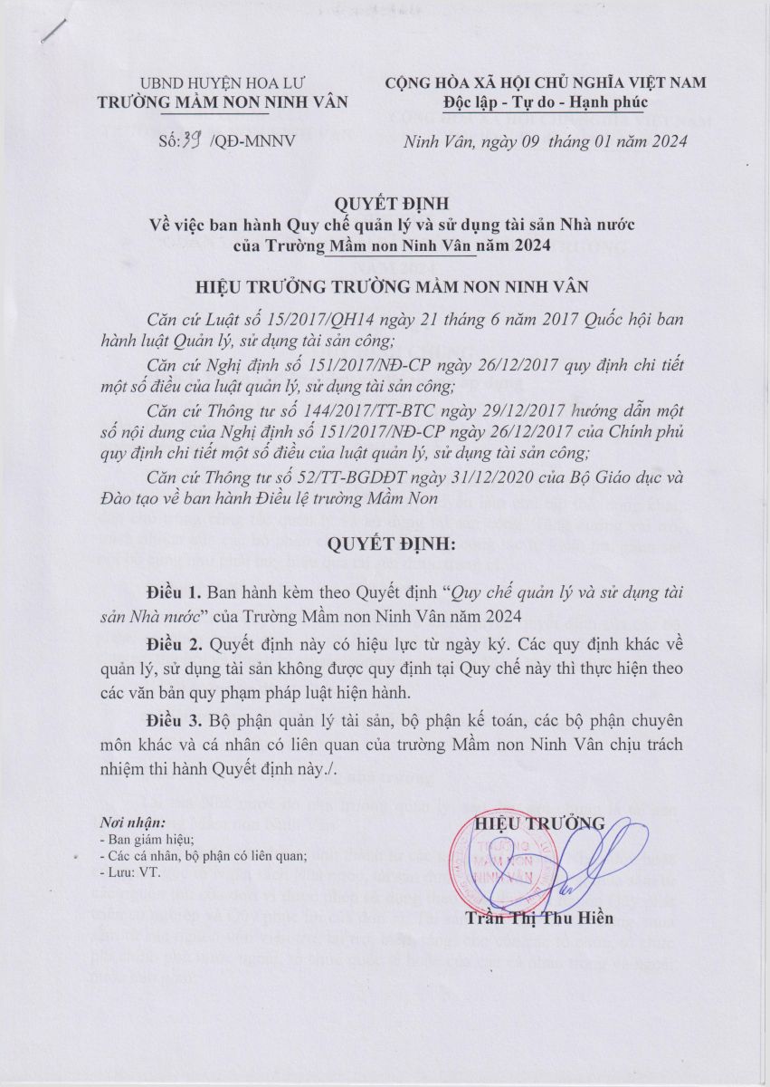 Quyết định ban hành Quy chế quản lý và sử dụng tài sản nhà nước của trường MN Ninh Vân năm 2024