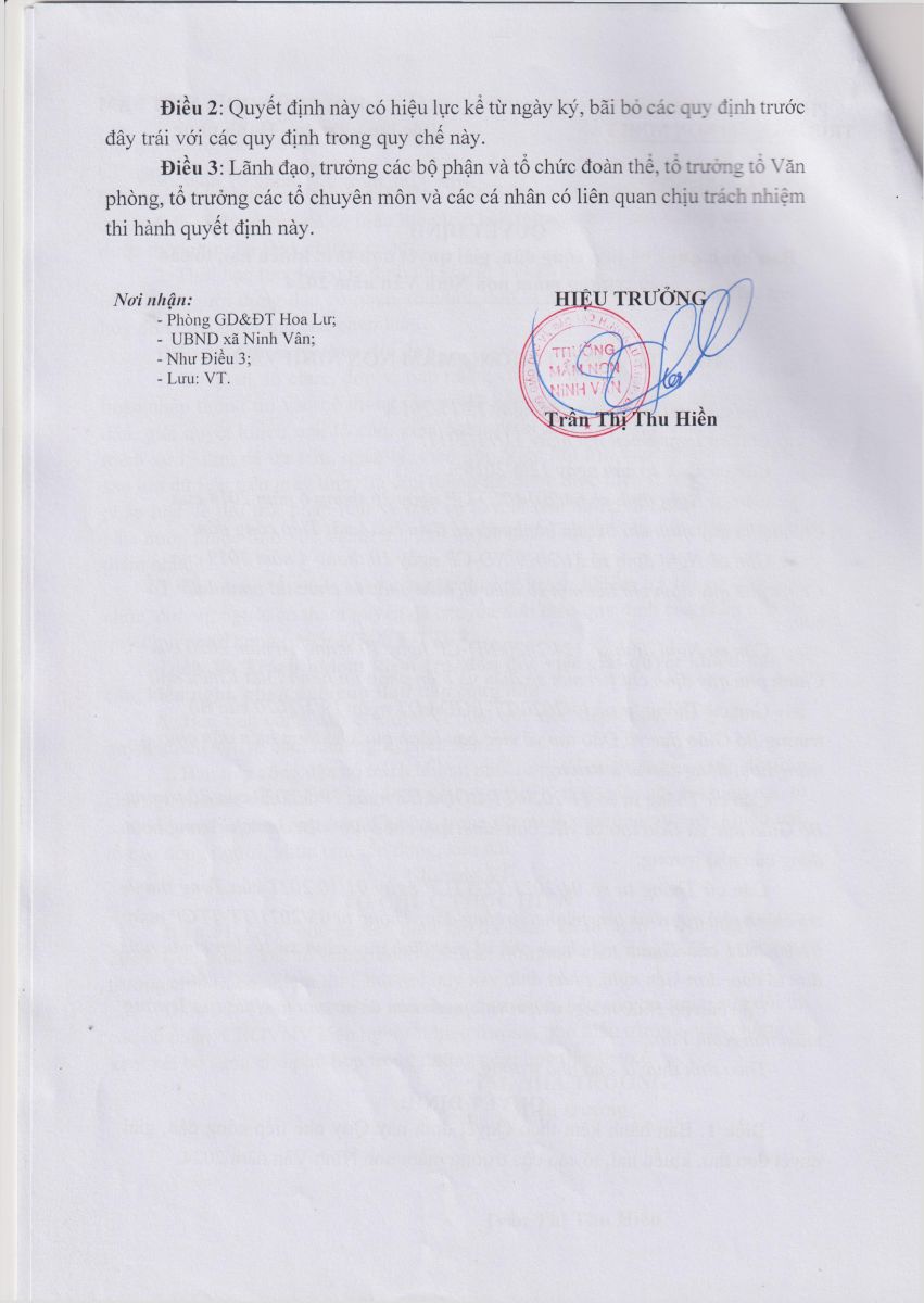 Quy chế chi tiêu nội bộ các khoản thu theo quy định, các khoản thu khác, các khaonr thu dịch vụ, phục vụ hỗ trợ hoạt động giáo dục trường Mầm non Ninh Vân năm học 2025 – 2026