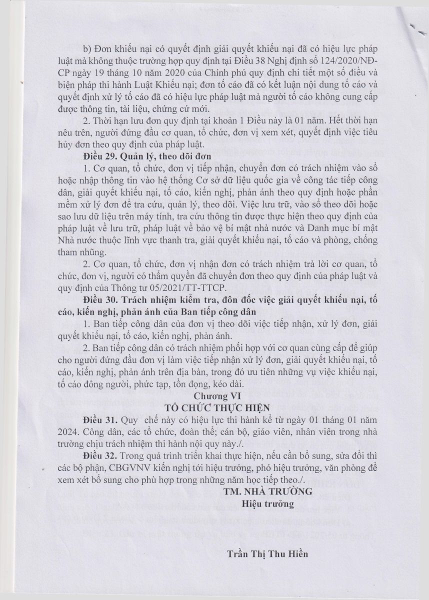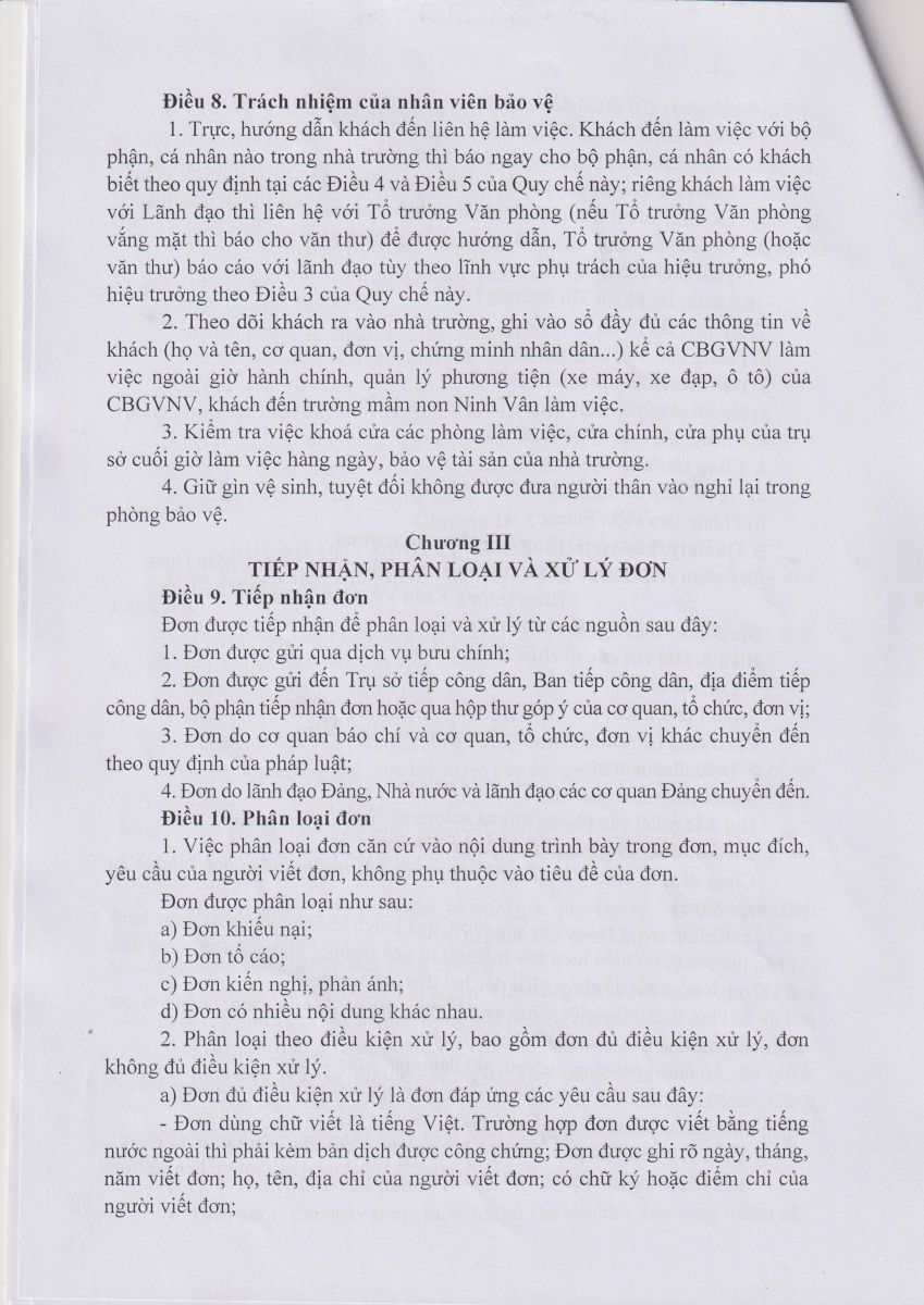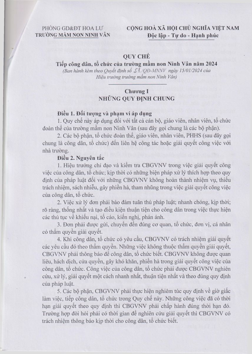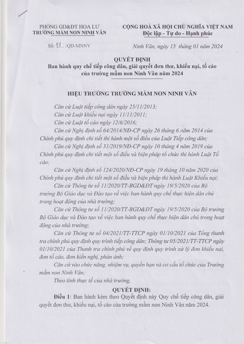 Quyết định ban hành Quy chế tiếp công dân và giải quyết đơn thư khiếu nại, tố cáo của trường MN Ninh Vân năm 2024