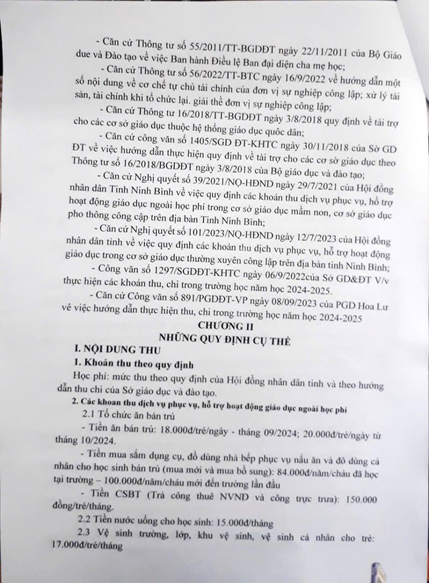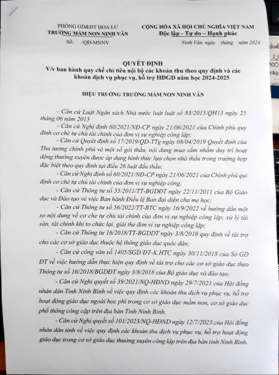 Quyết định ban hành và Quy chế chi tiêu nội bộ các khoản thu theo quy định và các khoản dịch vụ phục vụ năm học 2024-2025