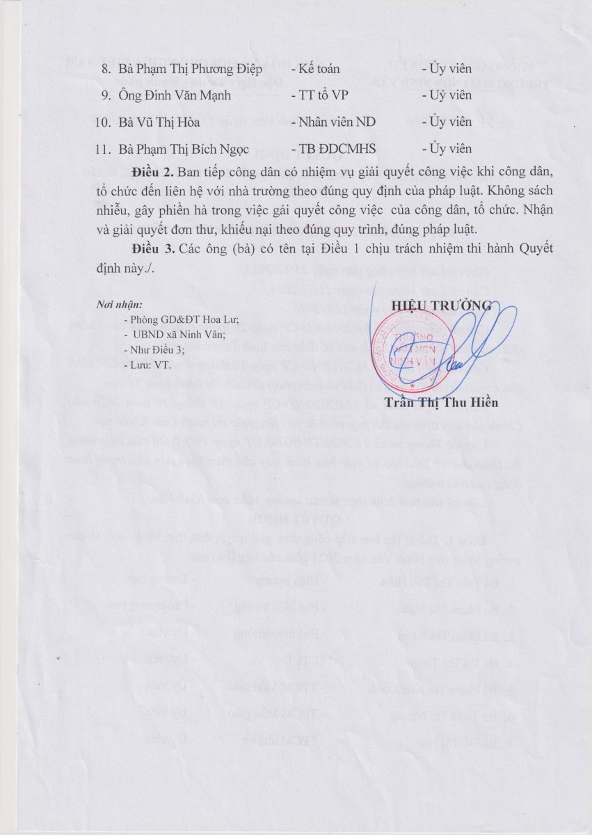 Quyết định thành lập Ban chỉ đạo thực hiện công khai và ban hành Quy chế công khai năm học 2025