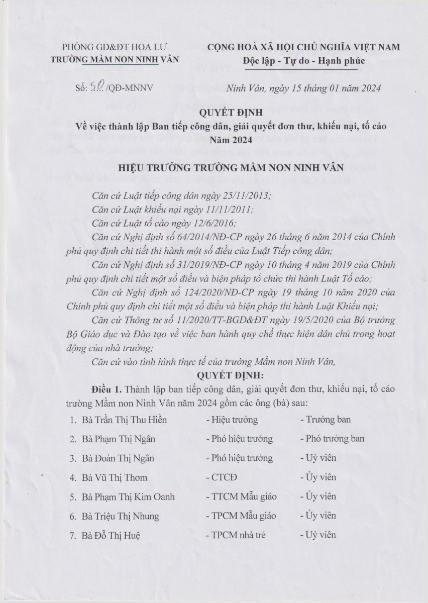 Quyết định thành lập Ban tiếp công dân, giải quyết đơn thư khiếu nại tố cáo năm 2024