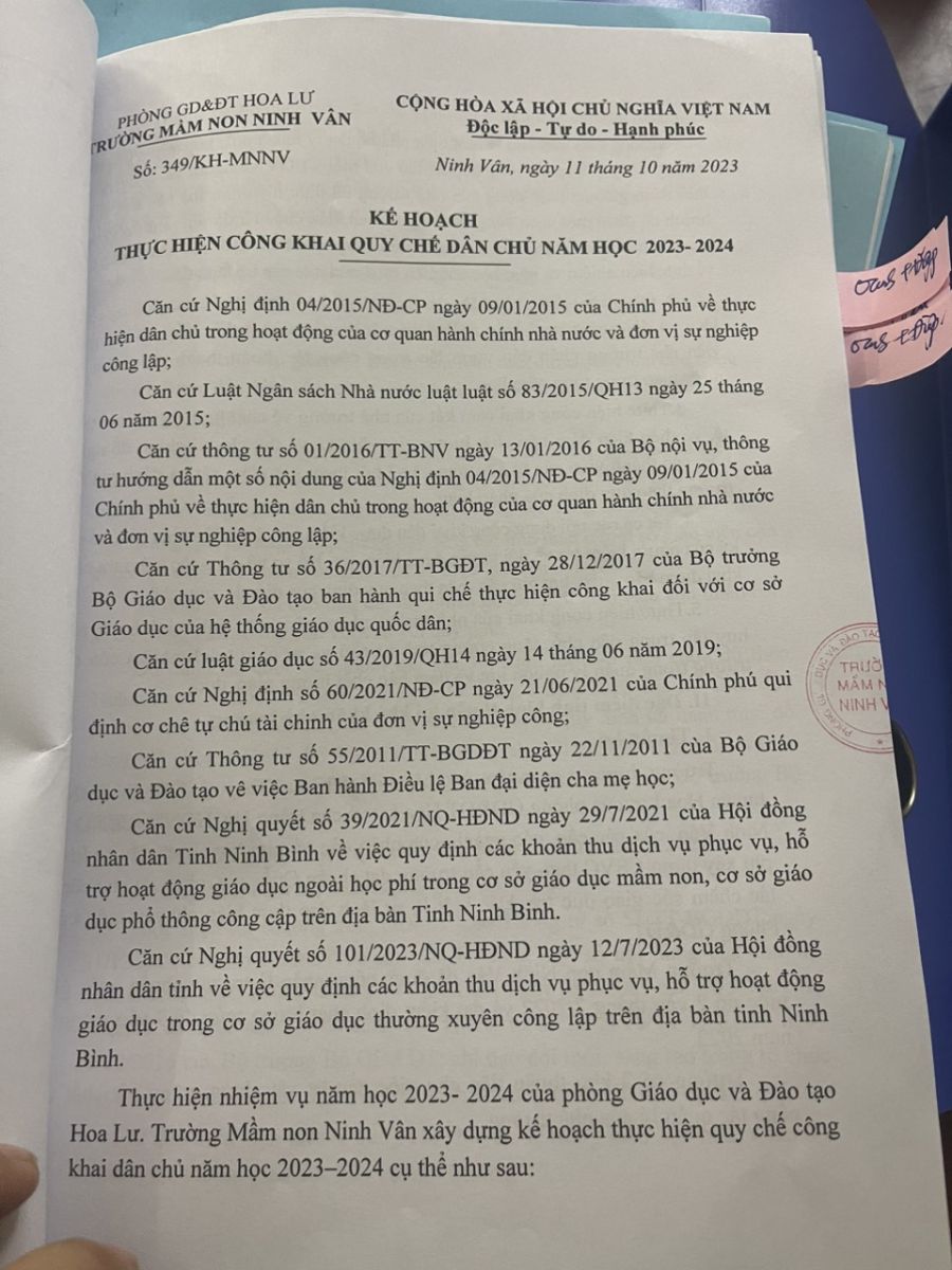 Kế hoạch thực hiện dân chủ trường MN Ninh Vân năm học 2025-2026