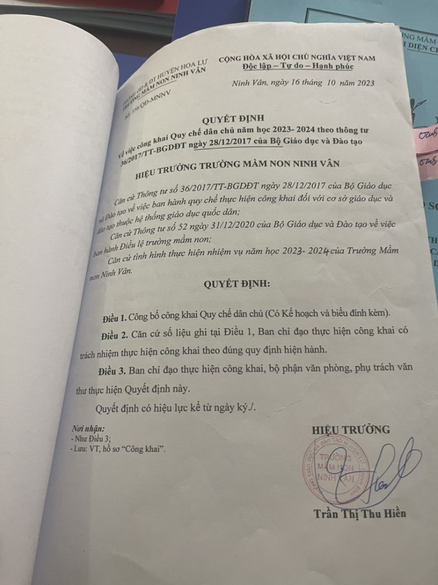 Quyết định và công khai ” Quy chế dân chủ năm học 2023-2024″ theo thông tư 36/2017/TT-BGDĐT