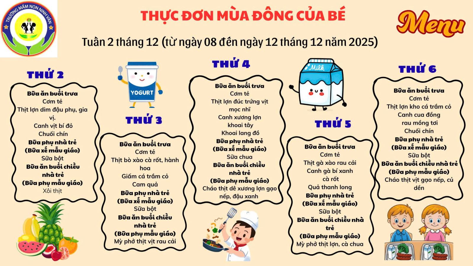 Thực đơn Tuần 2 tháng 12 năm 2025