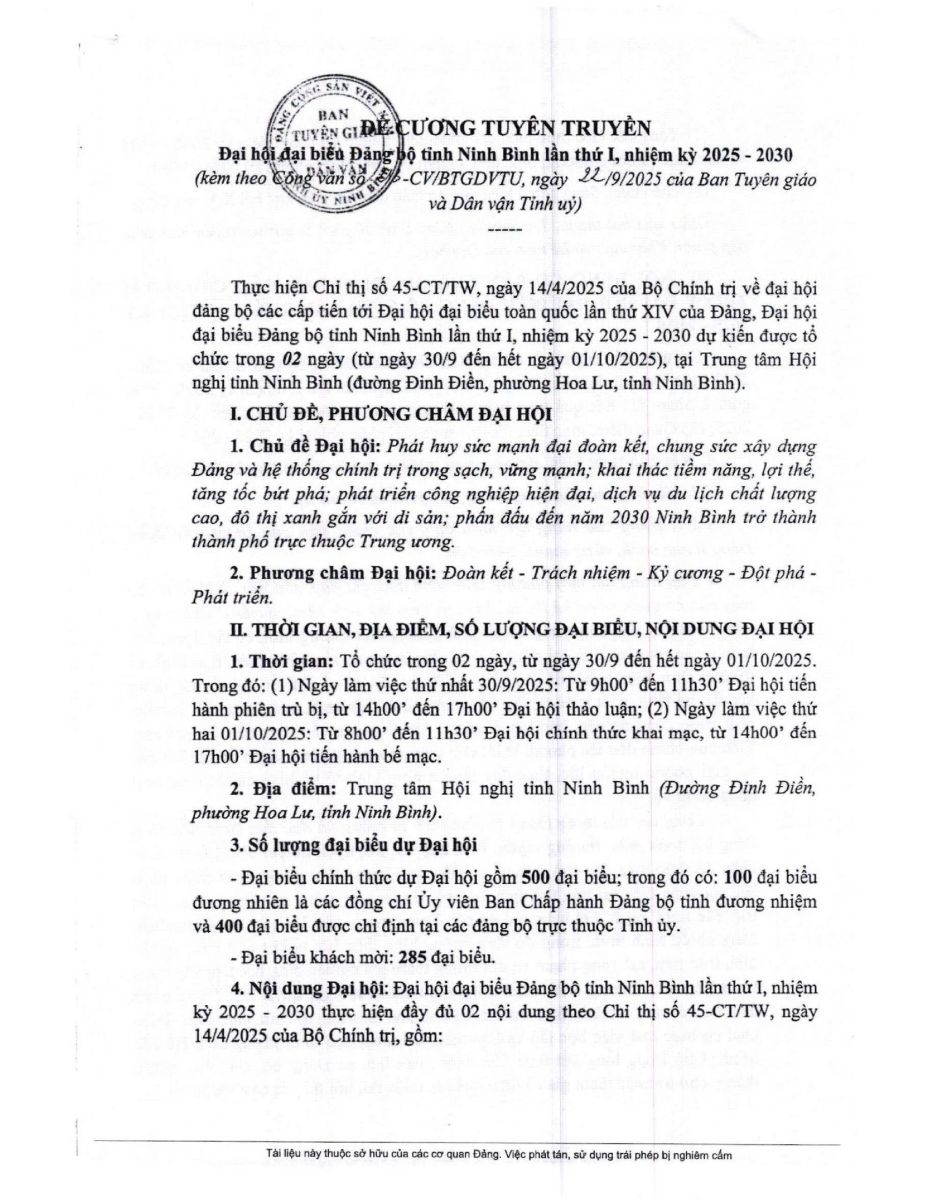 3. Tuyên truyền về Đại hội đại biểu Đảng bộ tỉnh Ninh Bình lần thứ I nhiệm kỳ 2025 – 2030
